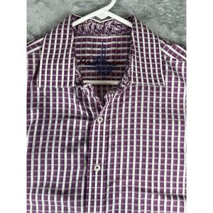 Robert Graham Men's Size Medium Red Geometric Check Long Sleeve Shirt Flip Cuff