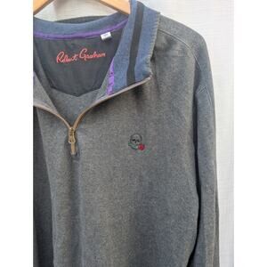 Robert Graham Mens Skull Rose Logo Half Zip Pullover Sweater Sz Large Charcoal