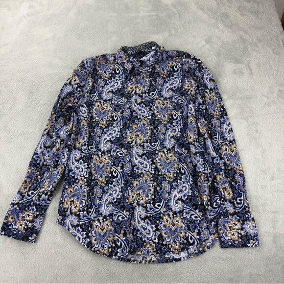 Robert Graham men's classic fit long sleeve shirt in size small. Features a navy paisley pattern. Pre-owned in excellent condition with no flaws.