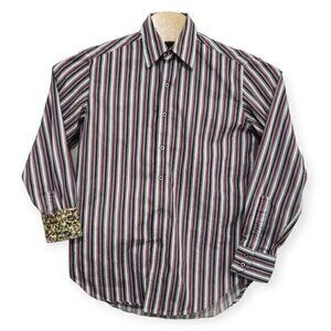 Robert Graham Mens Small Plum, Black, White Striped Flip Cuff Beach Lawn Chairs