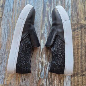 Robert Graham Men's US8.5 Floyd Skull Embossed Black Leather Slip On Sneakers