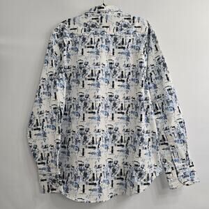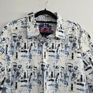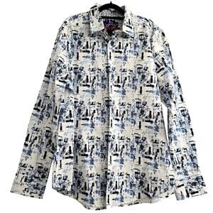 Robert Graham Men’s XL Classic Fit Button Down Shirt Abstract Blue White Stretch