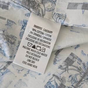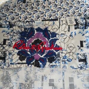 Robert Graham men’s XL Classic Fit button-down shirt. Features a bold abstract print in blue, black, and white with the brand’s signature contrast flip cuffs and embroidered detailing inside the collar. Crafted from a cotton stretch blend for comfort and style. A designer statement shirt perfect for business casual, parties, or special events.