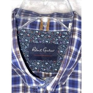 Robert Graham Modern Americana Mens XXL Tailored Fit Shirt Blue Plaid *FLAW*