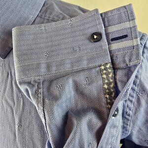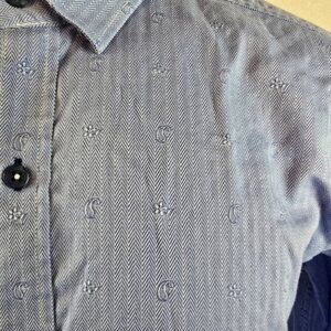 This Robert Graham Modern Americana men’s shirt blends sophistication and style. Features subtle embroidered detailing, a patterned inner cuff, and a tailored fit perfect for business casual, events, or nightlife. High-end quality and signature craftsmanship make this a must-have for designer shirt collectors or anyone who loves luxury menswear fashion.