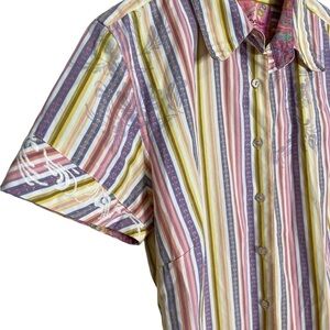 Robert Graham Multicolor Stripe Short Sleeve Top Button Down Medium Women