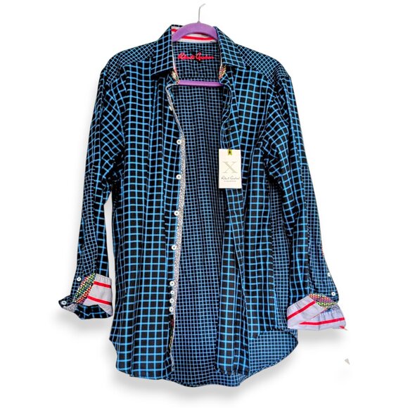 Robert Graham NWT 100% cotton stretch navy plaid checkers classic fit button down shirt men's L