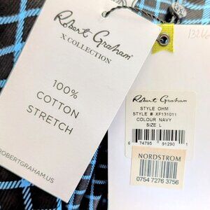 Robert Graham NWT 100% cotton stretch navy plaid checkers button down shirt L