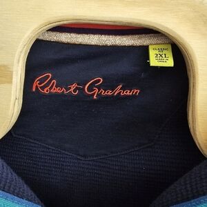 Robert Graham Navy Blue Cotton Sweater Mock Neck 1/4 Zip Pinstripe Men’s 2XL