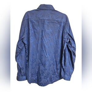 Robert Graham Navy Blue Damask Button Up Shirt Sz XL