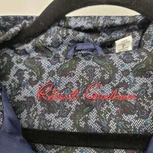 Robert Graham Navy Blue Full Zip Windbreaker Pockets Jacket Size Small