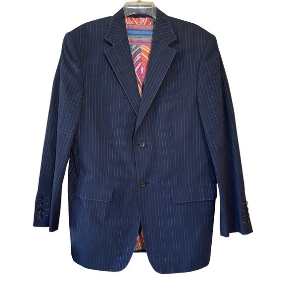 Robert Graham Navy Blue Pinstripe Mens Blazer Size Large EUC Sport Coat Preppy