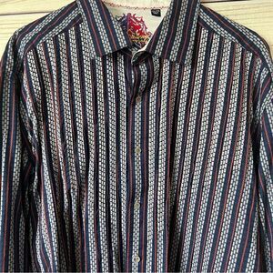 Robert Graham Navy, Red & White Embroidered Patterned Button Down Shirt