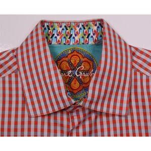 Robert Graham Orange Gingham Check Cotton Dress Shirt Men's Medium