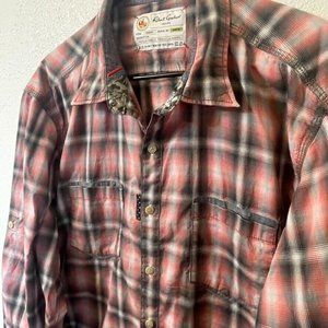 This Robert Graham Plaid shirt is in great condition. It has a soft feel to it for comfort. It is well-made with a tie back roll up sleeve. It has details throughout, that is known to Robert Graham designs.