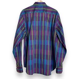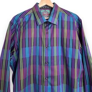 Robert Graham Purple and Teal Button Down With Embroidered Cuffs Men's Size XL