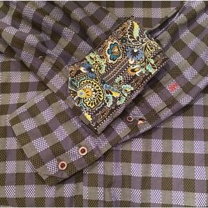 Robert Graham Quirky Plaid Shirt Long Sleeve Button Down Flip Cuffs Purple Black