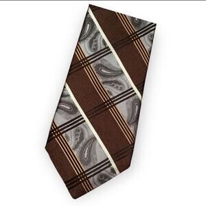 Robert Graham Quirky Silk Tie Chunky Wide Paisley Regimental Stripe Brown Purple