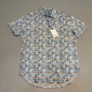 Robert Graham Radnor Floral Linen Blend Button Up Short Sleeve Shirt Men's Small