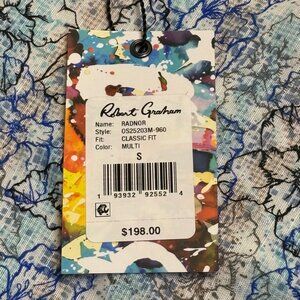 The Robert Graham Radnor Floral Linen Blend Button Up Short Sleeve Shirt in men's size small is a stylish and casual piece perfect for travel or everyday wear. Made from a lightweight and breathable blend of 55% linen and 45% cotton, this shirt features a spread collar and a button closure. The floral pattern adds a touch of sophistication, while the easy care and machine washable fabric makes it a convenient addition to any wardrobe. With its designer brand, colorful and modern design, this shirt is a versatile and fashionable choice for the summer, fall, and spring seasons.