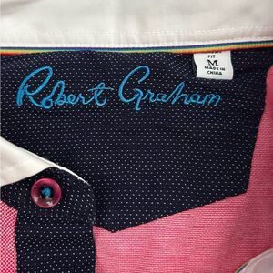Robert Graham Red Pink 100% Cotton Short Sleeve Polo Shirt Size Medium