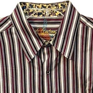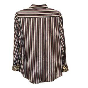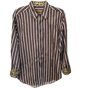 Robert Graham Red White Black Striped Cotton Button Down Dress Shirt Size XL