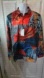 Bold paisley design with red and blue tones. Long sleeves and button-down style. Perfect for casual outings.