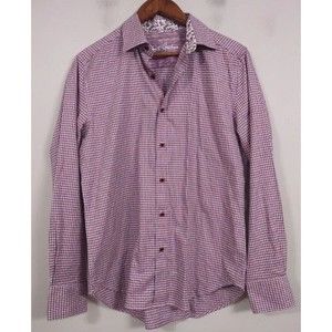 Robert Graham Red white Checked Long Sleeve Button Up shirt Flip cuff Large