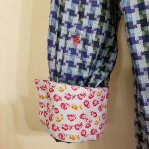 Robert Graham S Blue Purple Green Dress Shirt Hounds Tooth Long Sleeve