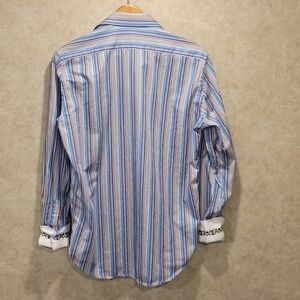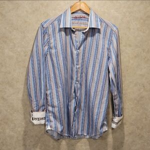 Robert Graham SZ M Multicolor Striped Button Down Shirt Embroidered Flip Cuffs