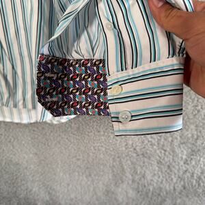 Robert Graham Shirt 2XL XXL Blue Striped Flip Cuff Button Up Designer Dress