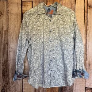 Robert Graham Shirt Casual Button Up Large White Blue Long Sleeve Pattern Cuff