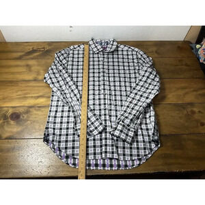 Robert Graham Shirt Flip Cuff Purple Geometric Checkered Button Up Men's XL