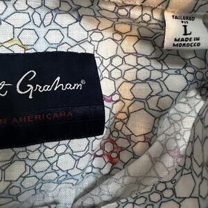 Robert Graham Shirt Mens Medium M White Geo Short Sleeve Tailored Fit Button Up
