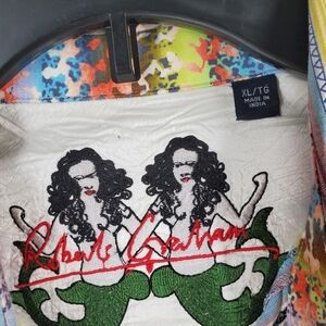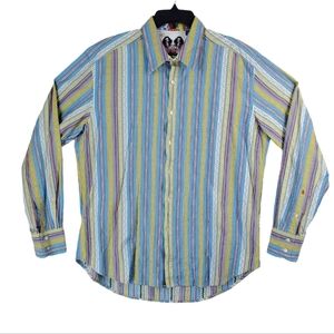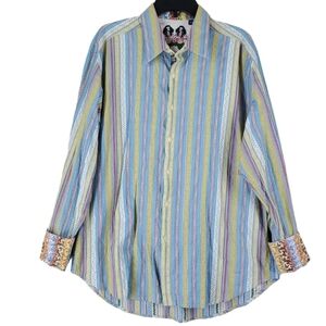Robert Graham Shirt Men XL Blue Green Multi Striped Flip Cuff LS Casual Hipster