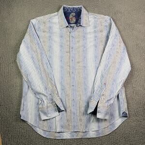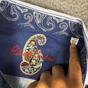 Robert Graham Shirt Mens 2XL Blue Yellow Jacquard Floral Paisley Flip Cuff