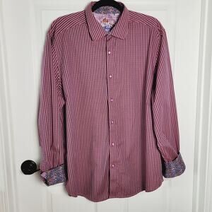 Robert Graham Shirt Mens 2XL Purple Plaid Classic Fit Floral Cuff Button Down