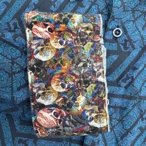 Robert Graham Shirt Men’s 2XLT Blue Black Geometric Paisley Skull Flip Cuff Tall