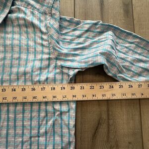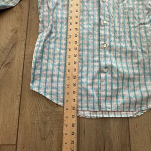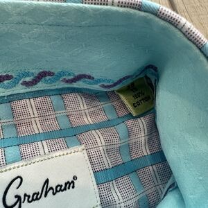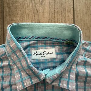 Robert Graham Shirt Mens 38 15 Regular Plaid Flip Cuff Button Long Sleeve Teal