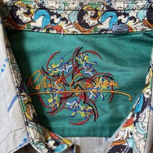 Robert Graham Shirt Mens L Gray Striped Button Up Flip Cuff Long Sleeve