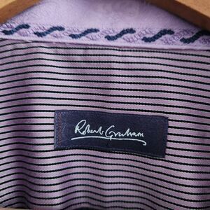 Robert Graham Shirt Mens Large 42, 16.5 Button Front Striped Cuff Print Luxury C
