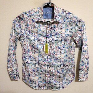 Robert Graham Shirt Mens Small New Long Sleeve Button Acker White Blue
