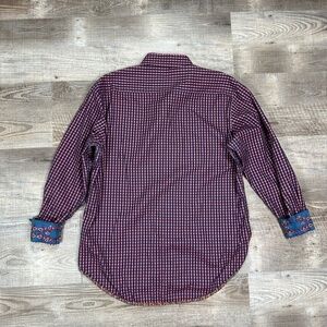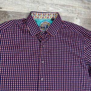 Robert Graham Shirt Men's Sz L Button Up Blue Pink Plaid 100% Cotton