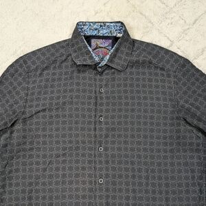 Robert Graham Shirt Men's XL Black Geometric Print Floral Cuffs Dress Cotton