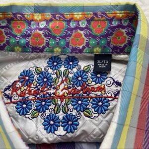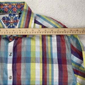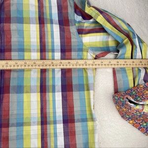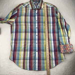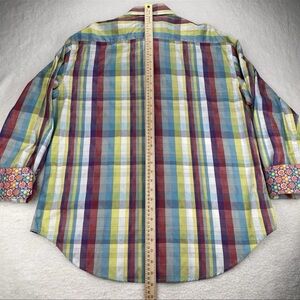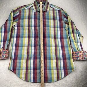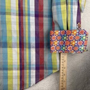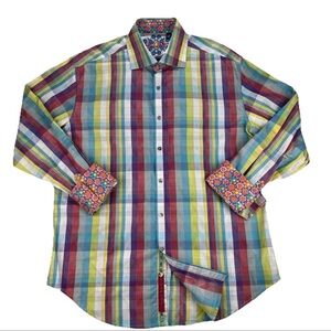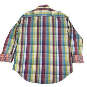 Robert Graham Shirt Mens XL Floral Orange Gingham Multicolored Flip Cuff Button