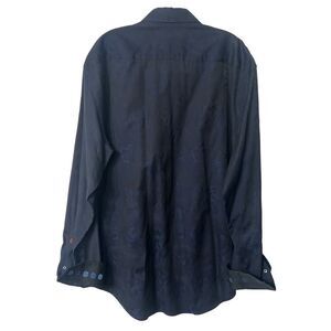 Robert Graham Shirt Mens XL Navy Floral Polka Dot Embroidered Extra Large