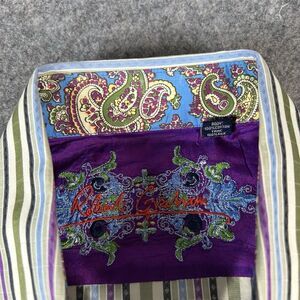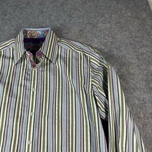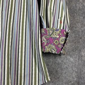 Robert Graham Shirt Mens XL Striped Flip Cuff Paisley Silk Cotton Button Down