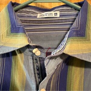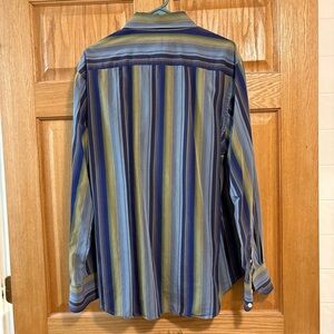 This Robert Graham Men’s XL Striped Shirt is a stylish and versatile addition to any wardrobe. Made from soft cotton with striped pattern and embroidered accents, this button-up shirt features a collared neckline and long sleeves. Perfect for a variety of occasions including casual, formal, or business events, this shirt is lightweight and breathable, making it suitable for all seasons. The multicolor design and classic Robert Graham branding add a touch of designer flair to this timeless and artistic piece.