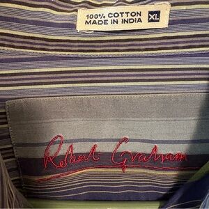 Robert Graham Shirt Men’s XL Striped Flip Cuffs Embroidered Button Up - Cotton