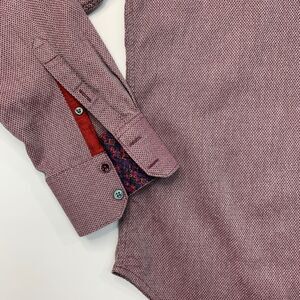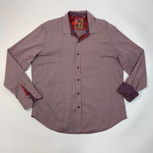 Robert Graham Shirt Mens XXL Burgundy Grey Cotton Flip Cuff Printed Button Up